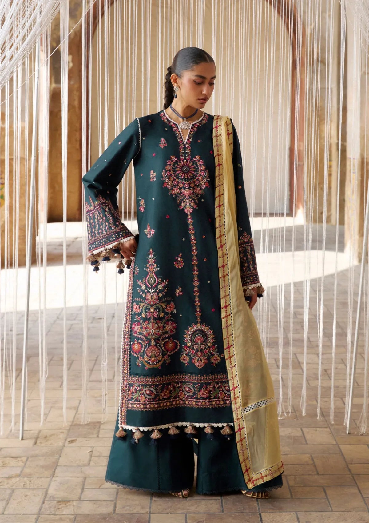 Mushq Hemline Symphony Karandi'25 D-03 Emerald Glimmer