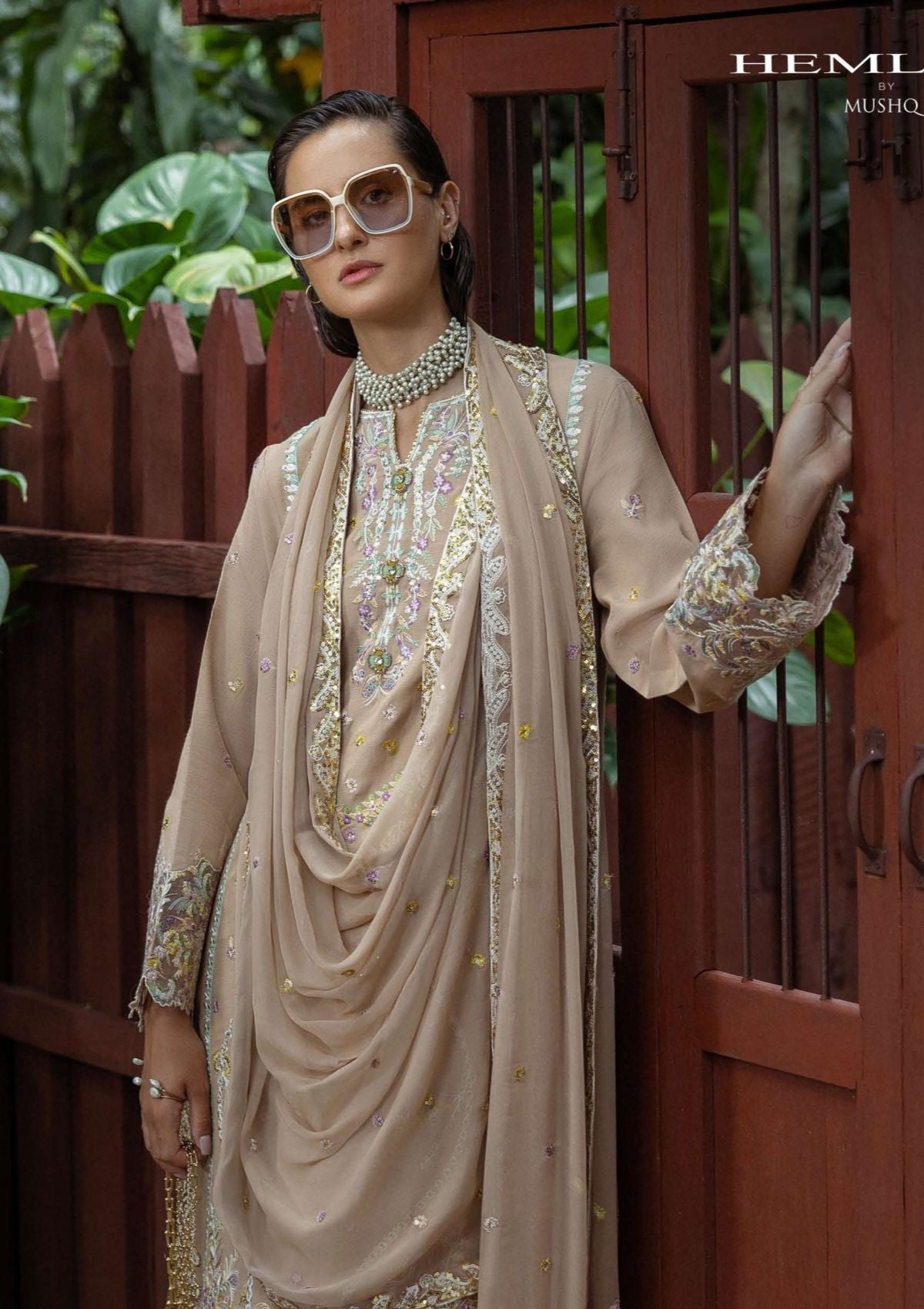 • Embroidered, sequined chiffon dupatta borderTrouser: