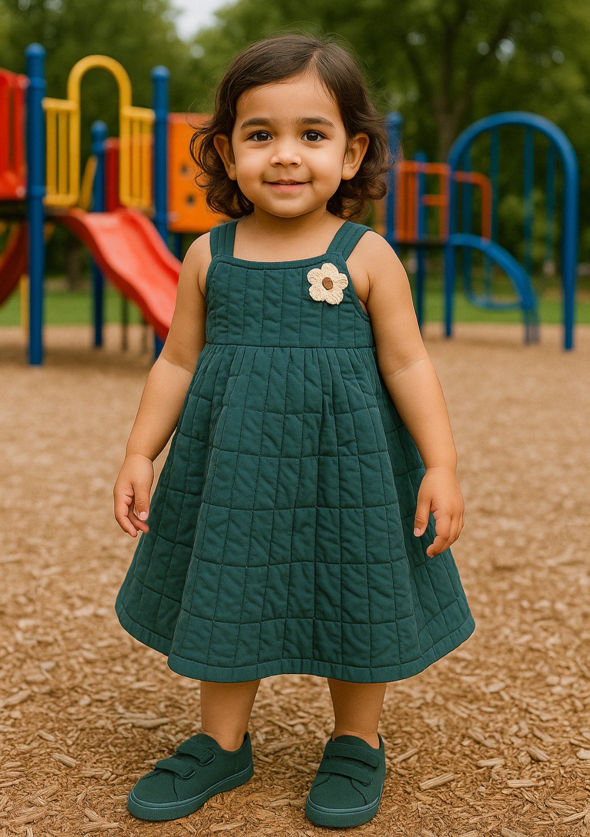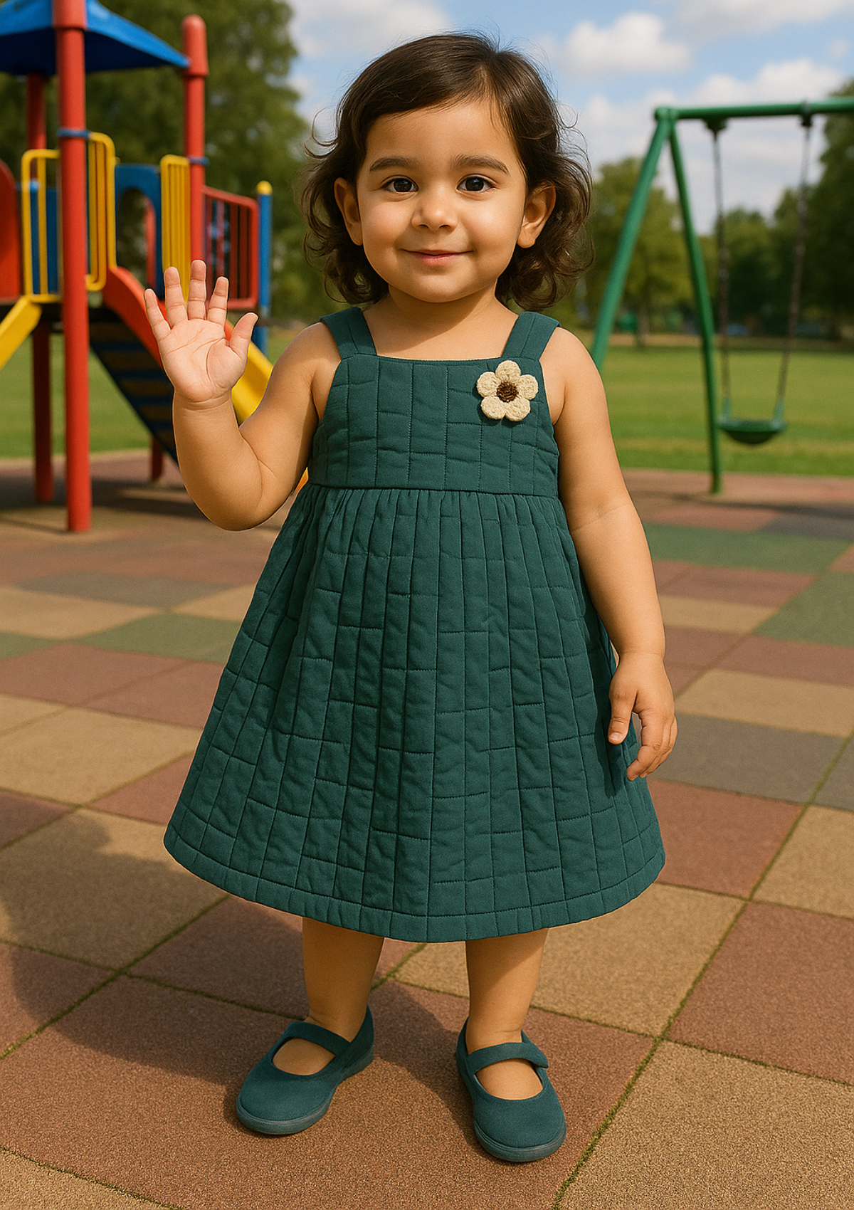 Girls Parachute Quilted Frock in Teal Green