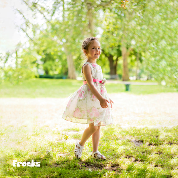 Girls Parachute Quilted Frock in Cream