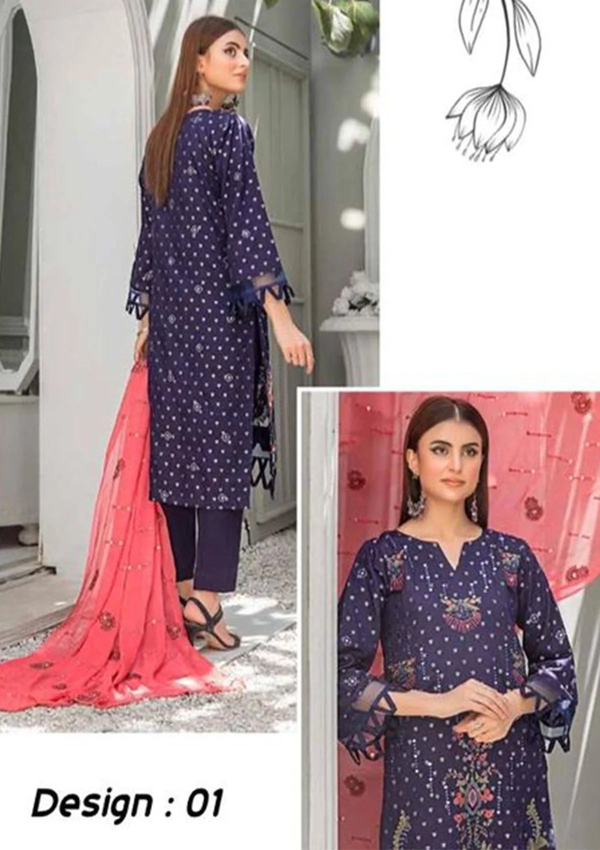 - Unstitched/ 3 Pcs Suit